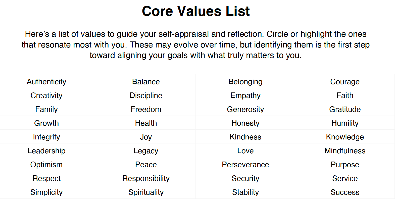 For organizing my life goals and values, I use Notion. Writing them out helps me clearly visualize what I need to focus on, what needs my attention, and what needs to be adjusted. It keeps me focused on progress, not perfection.